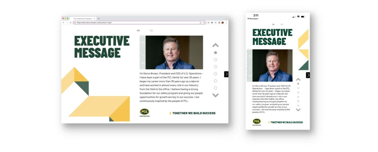 Collaborated with communications to create a landing page with an executive message from the CEO to contract workers on jobsites. It was an effort to spread awareness of benefits provided through PCL due to contractors not having a portal where they could access that information. We also couldn't rely on emails as a form of communication since we weren't confident that we had current information. The best way to communicate was providing a way to access this information digitally from the jobsite.
